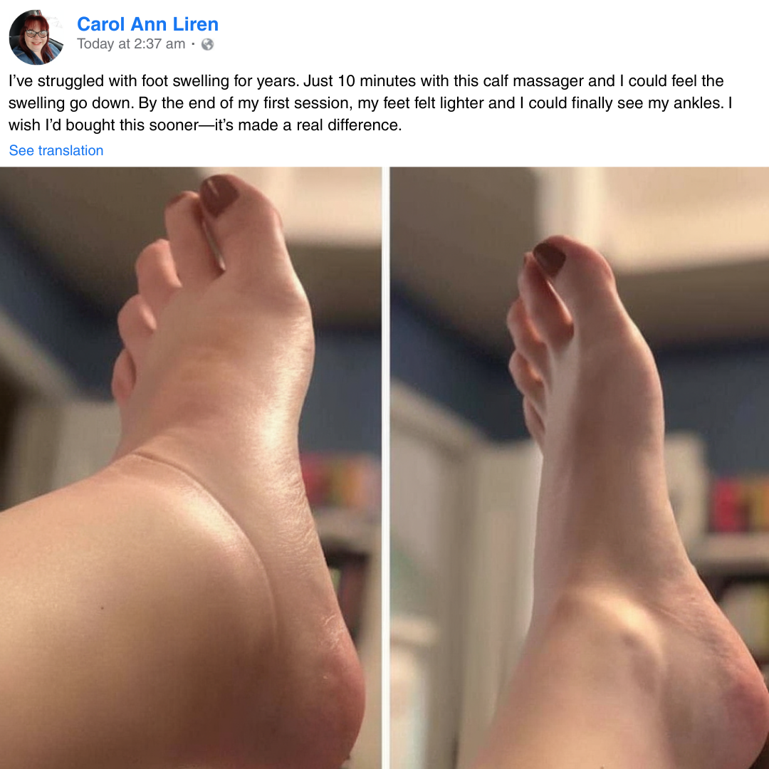 I use the massager after working in the garden. The heat is so nice, and the squeezing makes my legs feel strong again – Susan